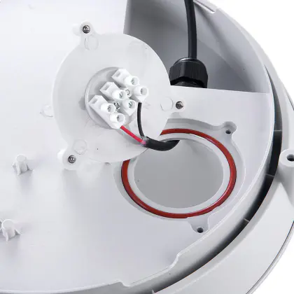 Die LED hat darüber hinaus ein warmweißes Licht (3.000 K) und sorgt für ein gemütliches Umfeld. Außerdem ist die Leuchte mit einem Notfallmodul ausgestattet und kann damit auch als Notfallbeleuchtung verwendet werden. Die Leuchtzeit nach einem Stromausfall beträgt 1 Stunde. Sie ist IP66 und IK10 klassifiziert und kann damit sowohl im Innen- als auch im Außenbereich verwendet werden.
