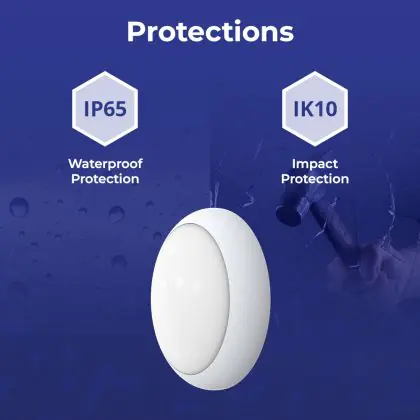 Die IK-Schutzklasse zeigt die Schlagfestigkeit einer Leuchte sowie den Schutz vor Vandalismus an. Sie wird in zwei Ziffern ausgedrückt (IK00 - IK10). Produkte mit IK00 sind somit nicht geschützt gegen Schläge oder Stöße jeglicher Art. Produkte mit IK10 bieten Schutz gegen Stöße von 20 Joule und sind gegen vandalismus-sicher.