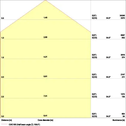 Der Abstrahlwinkel bezeichnet den Winkel, in dem das Licht aus der Lichtquelle ausgestrahlt wird. Er wird in Grad (D) angegeben. Je geringer die Gradzahl des Abstrahlwinkels ist, desto kleiner ist auch der Durchmesser des Lichtkegels, den die Lichtquelle produziert.