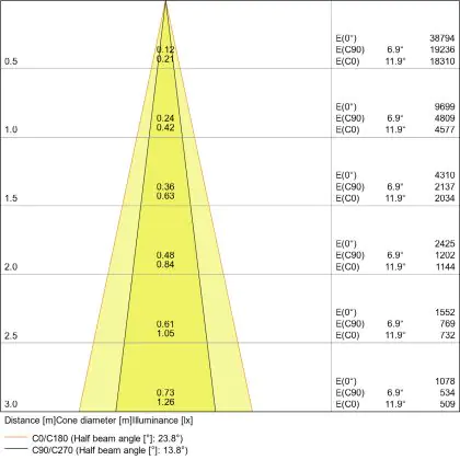 Der Abstrahlwinkel bezeichnet den Winkel, in dem das Licht aus der Lichtquelle ausgestrahlt wird. Er wird in Grad (D) angegeben. Je geringer die Gradzahl des Abstrahlwinkels ist, desto kleiner ist auch der Durchmesser des Lichtkegels, den die Lichtquelle produziert.