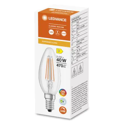 Ledvance Superior Classic LED E14 Gebogen-Tip Kerze Fadenlampe Klar 3.4W 470lm - 940 | Dimmbar - Höchste Farbwiedergabe