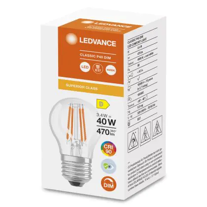 Ledvance Superior Classic LED E27 Kugel Fadenlampe Klar 3.4W 470lm - 940 | Dimmbar - Höchste Farbwiedergabe