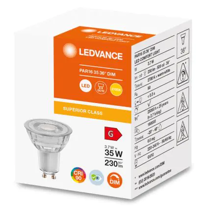 Ledvance Superior Reflektor LED GU10 Spot Klar 3.7W 230lm - 927 | Dimmbar - Höchste Farbwiedergabe