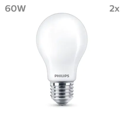 | Herstellername | Box 2 stuks - Philips LED Lamp Mat - 60 W - E27 - Warmwit licht | |