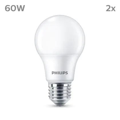 | Herstellername | Box 2 stuks - Philips LED Lamp Mat - 60 W - E27 - Warmwit licht | |
