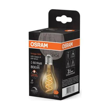 | Herstellername | Vintage 1906 LED CLASSIC A,B,P SLIM FILAMENT DIMMABLE 8W 922 Gold E27 | |