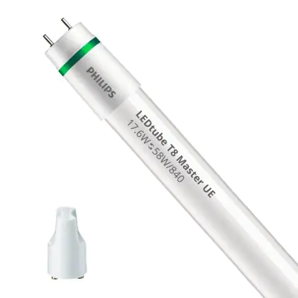 Bei der Philips LED Röhre 150cm | 4000K 17.6W - Master UE handelt es sich um eine energieeffiziente LED-Röhre. Sie ersetzt Ihre konventionelle Leuchtstoffröhre mit 58W. Die Röhre ist 1514 mm lang und hat die Farbtemperatur 4000K - Kaltweiss. Die durchschnittliche Lebensdauer der LED-Röhre beläuft sich auf 100000 Stunden. Wir bieten Ihnen für dieses Produkt eine Garantie von 5 Jahre an.