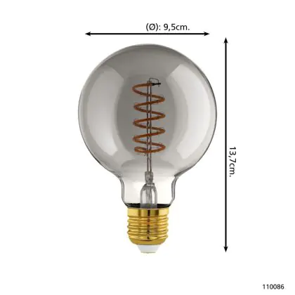 Description Eglo LED Globe E27 Filament Smokey 4W 100lm - 820 | Dimmable - Remplacement 15W