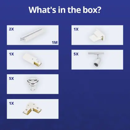 | Nom du fabricant | Complete L shaped 1-Phase Track Set White incl. 5x Spot fixture + GU10 2700K 3W Dim – 1 x 1 meter i | |