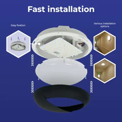 | Nom du fabricant | Budgetlight LED Bulkhead Pro V2 12/16/20W 3CCT Eyelid Black Ø325mm (2x36W eqv.) with EM3 | |