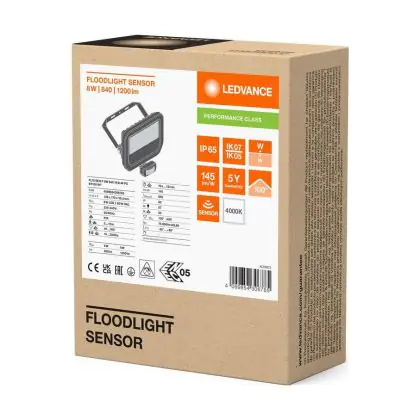 Description Ledvance Projecteur LED Aluminium Blanc 8W 1200lm 100D - 840 | IP65 - Détecteur De Mouvement Et De Lumière - Symétrique