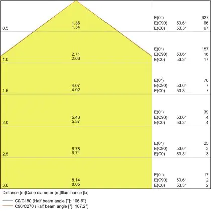 - Angle de diffusion: 120 °