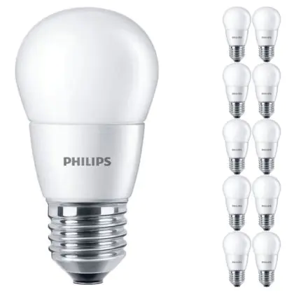 Cette ampoule Lot 10x Philips Corepro LED Lustre E27 Boule Dépolie 7W 806lm - 827 Blanc Très Chaud | Équivalent 60W avec son efficacité lumineuse de lumen par watt vous permettra de profiter d’un éclairage de qualité. Avec sa durée de vie de 15000 heures, vous n’aurez pas à vous soucier de son remplacement avant quelques années.