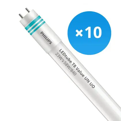 Ce tube LED Lot 10x Philips tube LED 150cm | 4000K 23W - Master Value UO est l’un des produits les plus éconergétiques en remplacement des tubes T8 classiques. Avec ce tube LED vous êtes donc assuré de sa qualité. Avec une puissance de seulement 23 W, ce tube LED a la même intensité lumineuse qu’un tube classique qui consomme 58 W. P>