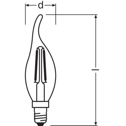 Description Osram Classic LED E14 Bent-tip candle Filament Claire 2.5W 250lm - 827 | Remplacement 25W