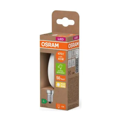Cette ampoule Osram LED Classic E14 Bougie Filament Dépolie 2.2W 470lm - 827 | Remplacement 40W avec son efficacité lumineuse de lumen par watt vous permettra de profiter d’un éclairage de qualité. Avec sa durée de vie de 50000 heures, vous n’aurez pas à vous soucier de son remplacement avant quelques années.