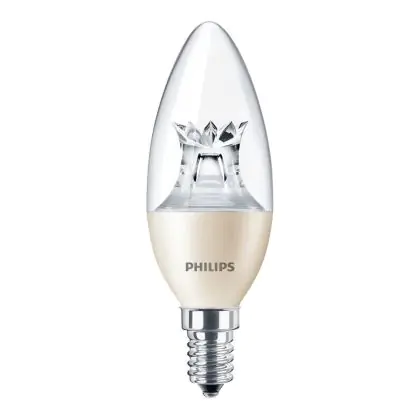 Cette ampoule Philips MASTER LED Bougie E14 Couronne Claire 8W 806lm - 822-827 Dim To Warm | Dimmable - Remplacement 60W avec son efficacité lumineuse de lumen par watt vous permettra de profiter d’un éclairage de qualité. Avec sa durée de vie de 25000 heures, vous n’aurez pas à vous soucier de son remplacement avant quelques années.