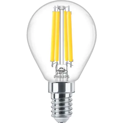 Cette ampoule rétro Philips Master Value LED Lustre E14 Boule Filament Claire 3.4W 470lm - 927 Blanc Très Chaud | Meilleur rendu des couleurs - Dimmable - Équivalent 40W est l’alternative idéale pour la remplacement de votre ampoule classique de 40 W. La technologie LED intégrée vous offrira de nombreux avantages. Les ampoules à incandescence traditionnelles ont une durée de vie limitée. Cette alternative LED vous permettra de profiter d’un éclairage durable et fiable.