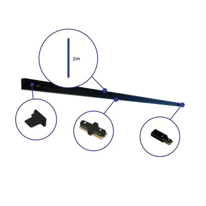 Description Rail Set Rail Monophasé 2 Mètre Noir | incl. Embout, Connecteur d’Alimentation et I-Connecteur