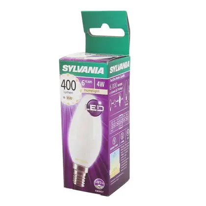 Cette ampoule Sylvania ToLEDo E14 Bougie Dépolie 4.5W 470lm - 827 | Remplacement 40W avec son efficacité lumineuse de lumen par watt vous permettra de profiter d’un éclairage de qualité. Avec sa durée de vie de 15000 heures, vous n’aurez pas à vous soucier de son remplacement avant quelques années.