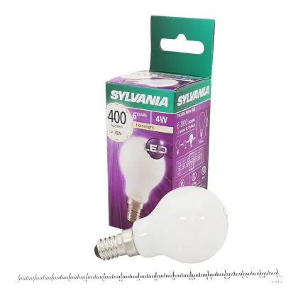 Cette ampoule Sylvania ToLEDo Retro E14 Boule Dépolie 4W 400lm - 827 | Remplacement 40W avec son efficacité lumineuse de lumen par watt vous permettra de profiter d’un éclairage de qualité. Avec sa durée de vie de 10000 heures, vous n’aurez pas à vous soucier de son remplacement avant quelques années.